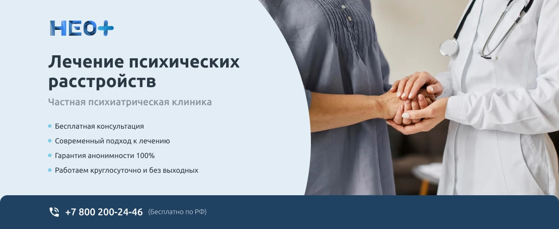 Депрессия – эмоциональное расстройство, которое влияет на качество жизни и отражается на межличностных отношениях. В запущенных ситуациях у пациента могут появляться суицидальные мысли, что делает его опасным для себя самого. Без помощи специалистов нормализовать состояние и вернуться к нормальной жизни не всегда возможно. Необходимо лечение депрессии. Провести процедуру можно, обратившись в клинику «НеоПлюс» в Шахтёрске. У нас работают психотерапевты, способны помочь даже в тяжелых случаях. Они проведут предварительную диагностику, грамотно поставят диагноз и назначат правильное лечение. Чтобы начать сотрудничество, позвоните по телефону ☎️ +7 (800) 200-24-46 или воспользуйтесь формой обратной связи на сайте. Доверяя лечение нам, вы ускоряете процесс нормализации состояния и сможете быстрее вернуться к обычной жизни.